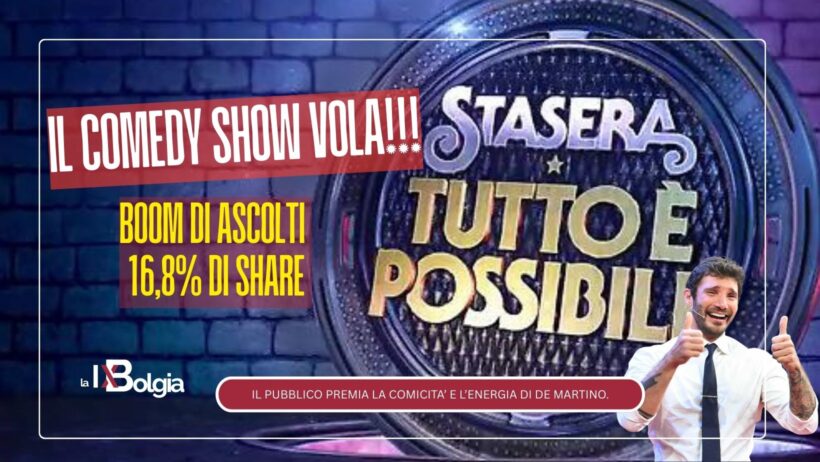 La serata di ieri ha confermato ancora una volta la forza del comedy show di Rai 2, “Stasera tutto è possibile”, che ha chiuso con uno share del 16,8%, confermandosi tra i programmi più seguiti della prima serata.